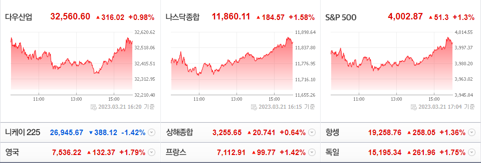 2023-03-21 미국 주요 주식시장 현황을 알아보겠습니다.